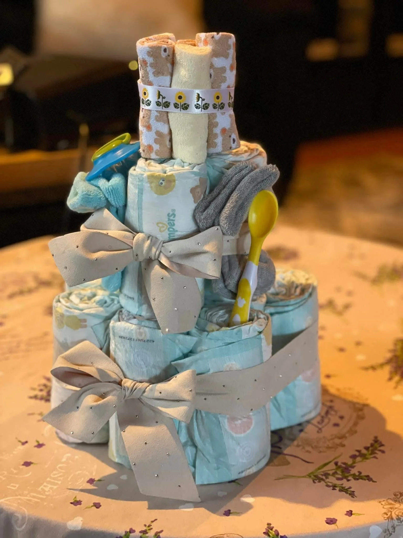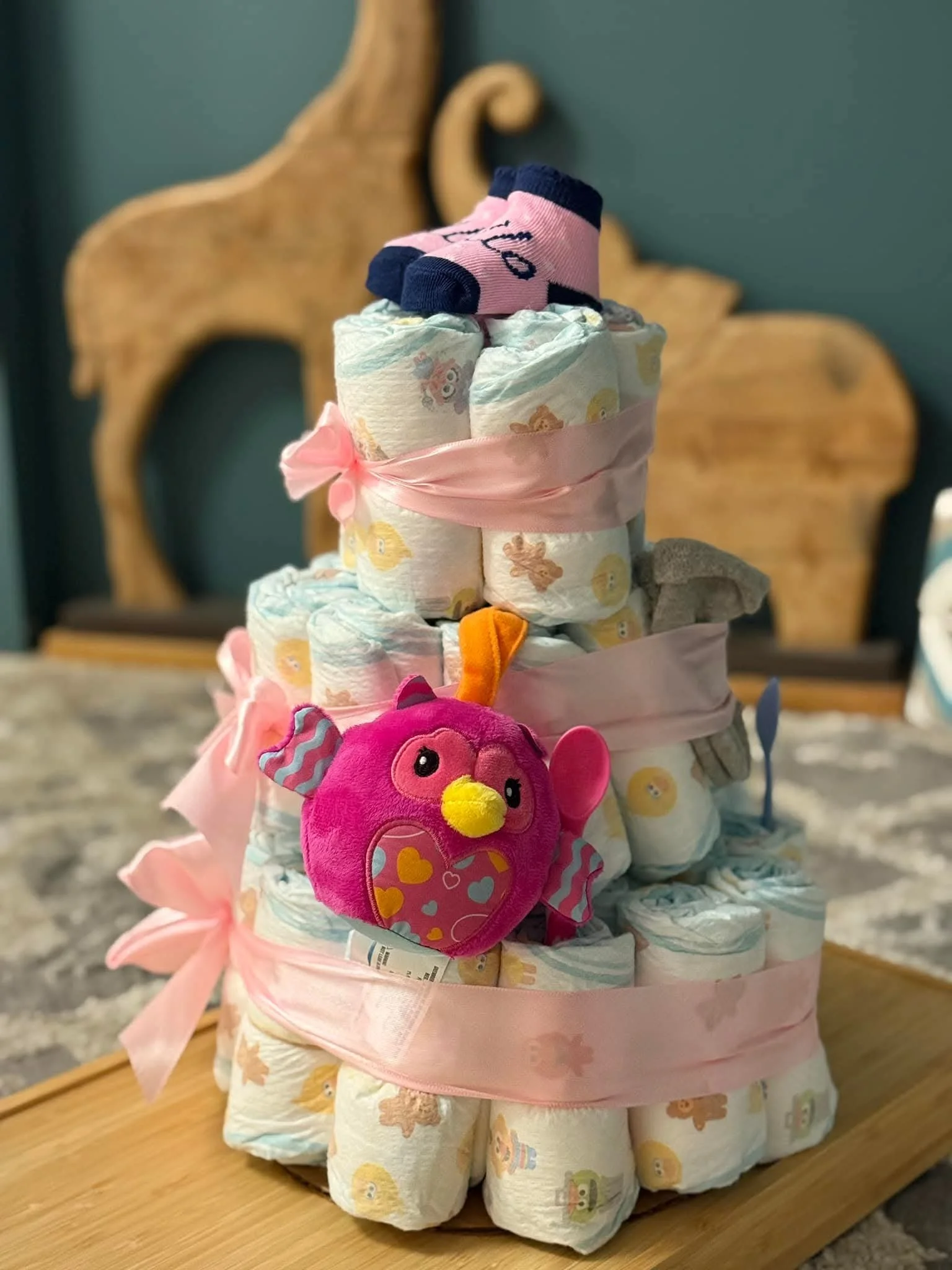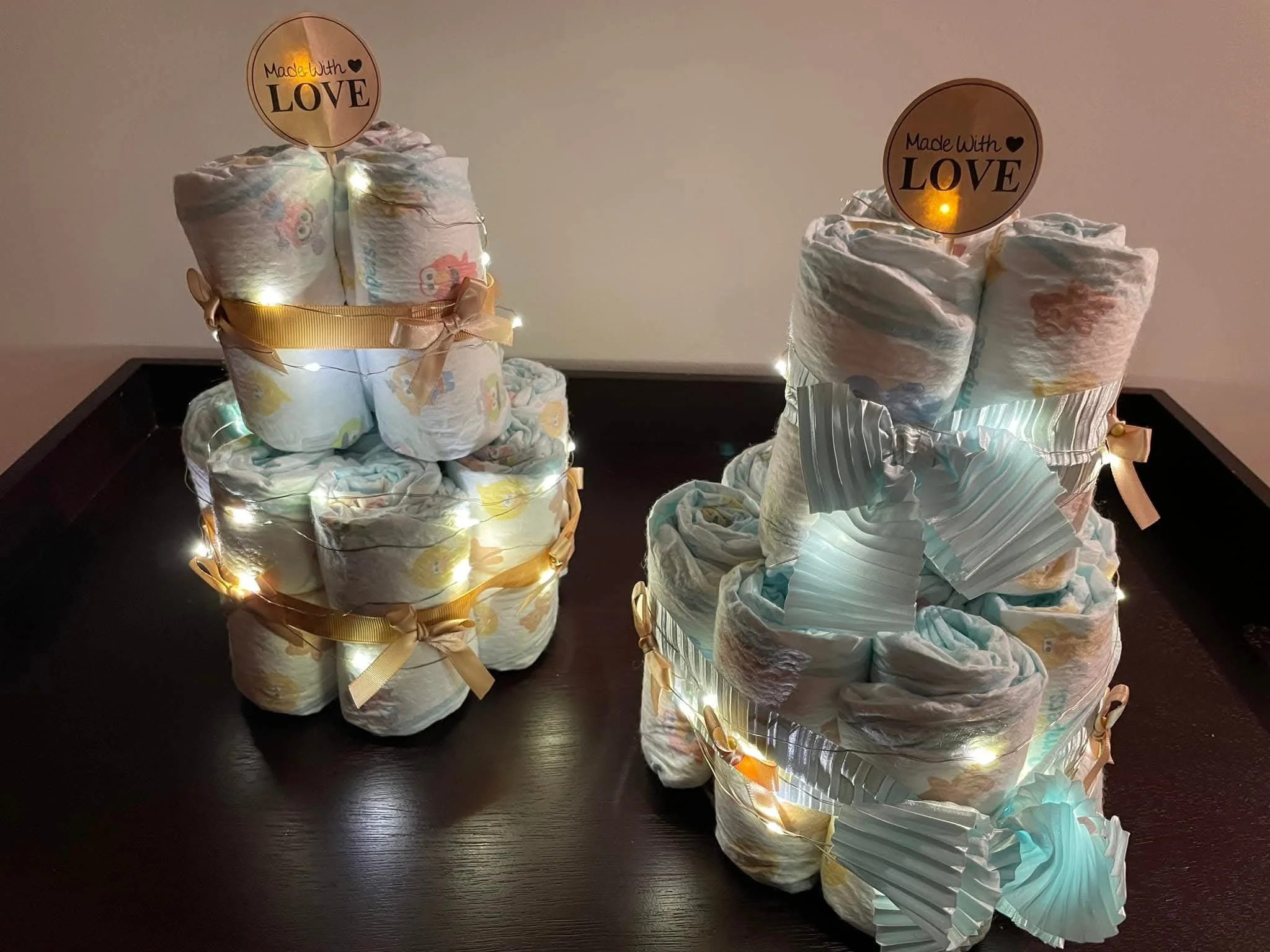 Ideal for baby showers, gender reveals, or welcome-home gifts, these custom diaper cakes combine style and usefulness in one unique package.