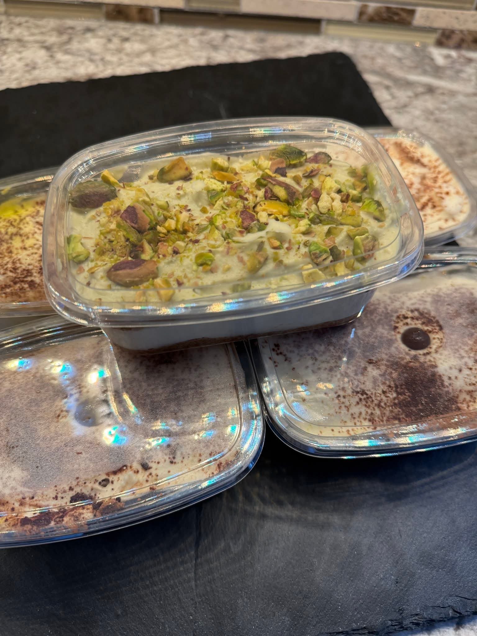 Choose from the classic tiramisu you know and love, or try her pistachio tiramisu — a unique twist featuring smooth, nutty flavour layered into the same creamy, decadent texture.